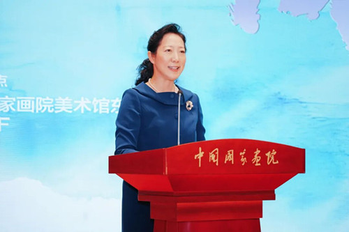 中国文联原党组副书记、副主席覃志刚,原文化部副部长董伟,原文化部副部长丁伟,中央文史研究馆副馆长、中国文联副主席冯远,中国文联原副主席杨承志,中国文艺评论家协会原主席夏潮,十二届全国政协副秘书长、教科文卫体委员会副主任张秋俭,北京市文联主席韩子荣,中国书法家协会主席孙晓云等出席开幕式。文化和旅游部艺术司司长赵聪,中国女画家协会会长、中国国家画院副院长、此次展览策展人徐涟,中国美术家协会分党组书记、驻会副主席屈健,中国国家画院院长、中国美术家协会副主席刘万鸣,中央美术学院院长林茂,中国美术家协会副主席、广州美术学院党委书记林蓝,国家民族画院院长李传真,北京百海凝慈善基金会创始人、西海美术馆创始人、中华慈善总会名誉副会长白海宁先后在开幕式上致辞。