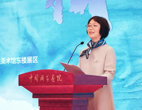 徐涟介绍了此次展览的基本情况和策展理念,并向支持展览的各方表示了诚挚的感谢。她谈道:“昨天,我有幸在现场聆听习近平主席在全球妇女峰会主旨讲话《弘扬北京世妇会精神 加速妇女全面发展新进程》中的深情寄语。那一刻,我深切感受到,30年前《北京宣言》和《行动纲领》,不仅是一份国际共识,更是一种深植于心的信念——关于平等、关于尊严、关于每一个女性都应被看见、被尊重、被赋能的坚定信念。而今天,我们以艺术之名,将这份信念具象为笔墨、色彩、线条与光影,向世界宣告:我们,女艺术家,与时代同行!”她表示,本次展览既是对“北京+30”进程的文化献礼,更是以视觉语言深化性别平等对话的艺术行动。站在“北京+30”的历史节点上,中国女画家协会以艺术为独特载体,将世妇会精神融入创作、展览与文化交流的每一个环节,让“平等、尊重、包容”的理念通过笔墨与色彩,在新时代焕发出更鲜活的力量,为推动中国女性艺术的繁荣发展,为实现中华民族伟大复兴的中国梦贡献“我们”的智慧和力量! 屈健致辞 屈健表示,此次展览以艺术的方式致敬全球妇女事业发展成就,展现30年来中国妇女事业的进步,意义重大。希望广大女艺术家深入生活、扎根人民,从时代的脉动中汲取灵感,在人民的实践中发现故事,创作出更多弘扬中华美学精神、展现当代中国价值的优秀作品,向世界讲述一个生动、立体、全面的中国。未来,中国美术家协会将一如既往地关注、支持女性艺术事业的发展,努力为广大女艺术家搭建更广阔的展示平台,营造更良好的创作环境,提供更有效的服务支持,共同推动中国美术事业取得更大的进步。