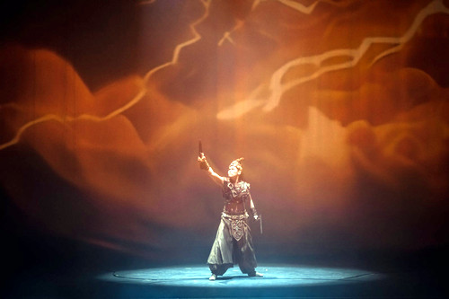 当龙马踏浪,自奔腾的“黄河”之上腾跃而出,神龟负灵,于潋滟的洛水之畔缓缓浮现,百吨级水效系统轰然启动,瞬间勾勒出洪水倾泻的磅礴震撼,风雨雷电特效精准联动,将上古传说的奇幻与壮阔具象化在观众眼前。