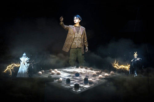 演出现场,九宫格升降舞台随剧情灵动变换,270度环形屏铺展无垠视界,二者浑然相融,构建出一个流动的、沉浸式的叙事空间。
