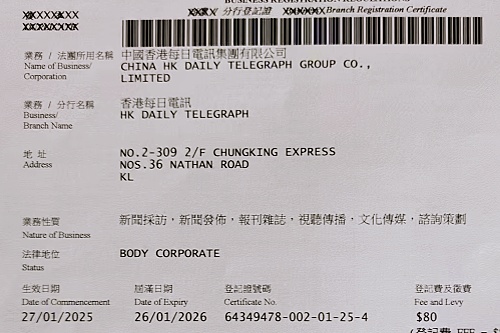 香港每日电讯注册证编号:2196900,香港每日电讯登记证编号:64349478--002--01--15--0。