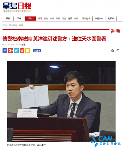 香港某反对派媒体创办人黄洋达30日在“脸书”上声称,香港立法会议员郑松泰在天水围出席活动前被警方拘捕。他还声称,“据警察所讲,正送往天水围警署。”