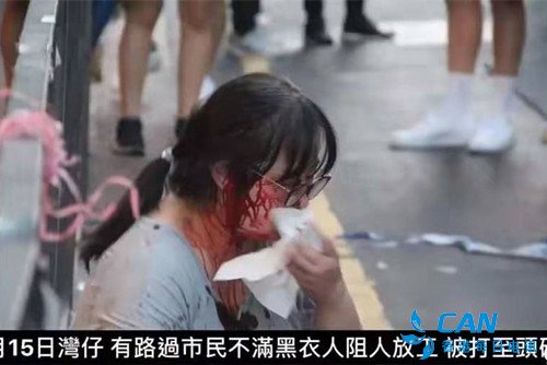 在铜锣湾、在康威商场天桥、在北角、在炮台山、在港岛区,暴徒们对无辜的香港市民痛下杀手,围殴毒打,被打的市民有男人、女人、还有老人。