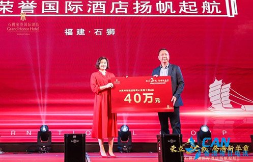 1月6日晚,荣誉国际集团举行20周年“荣耀回归·感恩盛典”暨石狮荣誉国际酒店项目启动仪式,同时宣布向石狮市教育基金会捐赠200万元,向福建省公安民警英烈基金会捐赠100万元,向泉州市委统战部“同心安居工程”捐赠40万元,向石狮市慈善总会捐赠20万元。