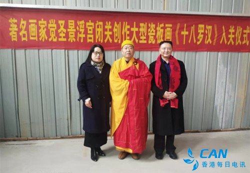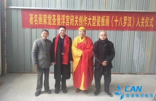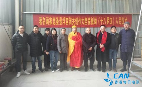 2020年1月13日,腊月19号,著名画家,佛教绘画代表性人物画家张伟觉圣于上午10时,在江西景德镇景浮宫举行大型瓷板壁画闭关创作入关仪式。
