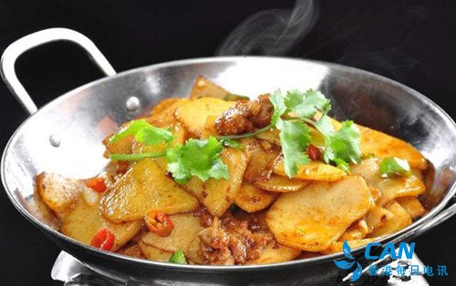 干锅土豆片是一道以土豆、五花肉、青椒作为主要食材,以色拉油、葱、姜、蒜作为调料制作而成的川渝地区的传统名菜,口味香辣。