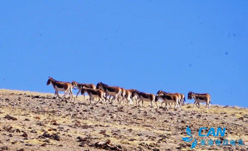 1月27-28日,藏野驴在肃南裕固族自治县祁丰藏族乡境内活动。