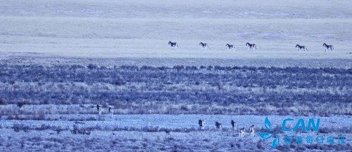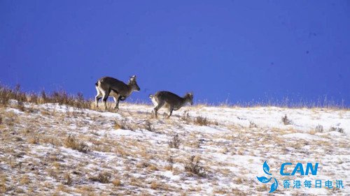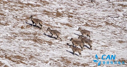 隆冬时节,甘肃省肃南裕固族自治县祁丰藏族乡寒气逼人,成群的藏野驴、盘羊、藏原羚、岩羊等野生动物在海拔4000米的高原雪域觅食,场面颇为壮观。