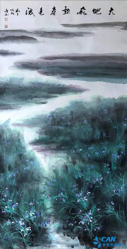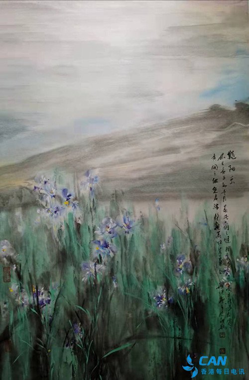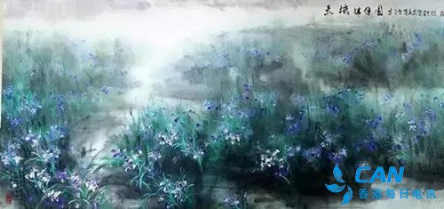 一位身着中式传统服装的画家,在洁白的宣纸上,用淡青色为主,留白为辅,由远而近,层次渲染,笔到眼前,几丛水草间、几株小花中,一只小蜜蜂跃然纸上。略作点缀,盖上印章,一张描绘鄱阳湖湿地的画作完美落笔,令现场观众赞不绝口。