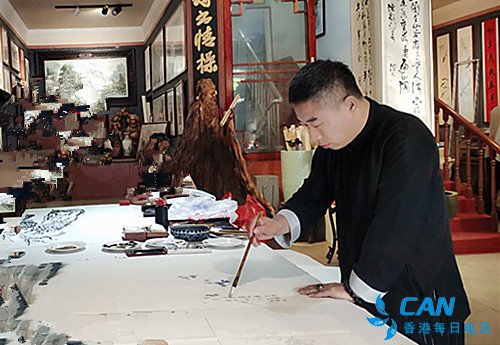 这次受邀到江西省景德镇市参加“中国情、中国画、中国瓷国家邀请展”,于桂利带来了他精心创作的几幅作品,悬挂在景德镇昌南里文化艺术中心四楼展厅里。