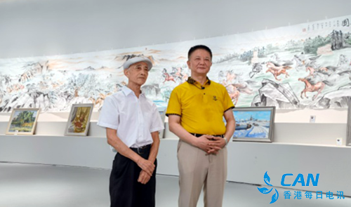 展厅里还有一幅20米长的国画吸引了大家的目光,这幅画作的作者、徐悲鸿传人殷伯生介绍,长卷国画《瓷国百骏图》为庆祝中国共产党建党一百周年而作,髙2米,画了一百匹骏马朝向井冈山党旗,喻示中华民族优秀儿女共产党人一往无前,克服艰难险阻奋斗拼搏的伟大精神。