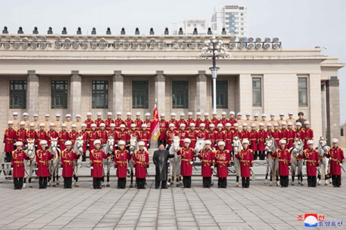 金正恩同志表示期待,朝鲜人民军在维护祖国的无穷繁荣、保卫人民安宁中肩负谁也担当不起的革命先锋重任,将大力显示百战百胜的英雄军队的名誉,用武装可靠保证我国革命的新的历史进军,并同他们合影留念。