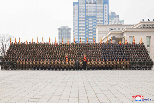朝中社10日报道称,朝鲜劳动党总书记、朝鲜民主主义人民共和国国务委员长金正恩同志2月9日同参加庆祝朝鲜人民军建军75周年阅兵式的各级部队、单位的指战员合影留念。