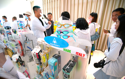 在宜阳县产业集聚区,采访团来到总投资3亿元、占地面积150亩的洛阳富隆特体育用品有限公司。该公司主要生产泳帽、泳镜、泳衣、潜水镜、呼吸管、蛙鞋等游泳类和潜水类体育产品,是世界游泳名将菲尔普斯自有MP品牌在中国的总代理。2022年,公司年产值1.2亿元。