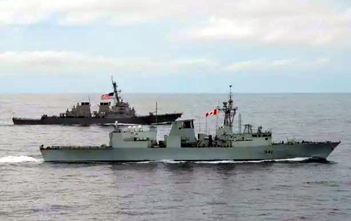 美国第七舰队则称,美国海军“约翰逊”号导弹驱逐舰和加拿大皇家海军“渥太华”号“例行”穿越了“符合国际法规定的公海航行与飞越自由的水域。”