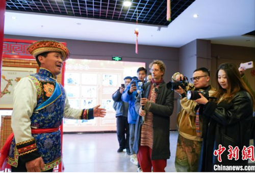 图为花儿唱家宋宝元向中外文旅达人漫(即唱)花儿。马铭言 摄