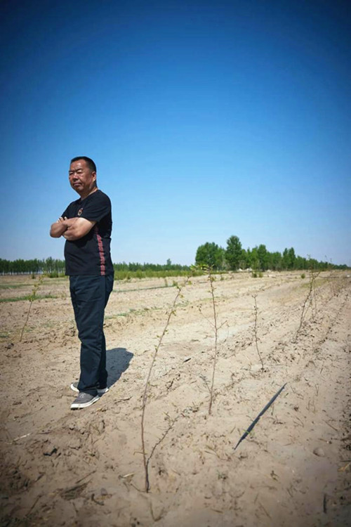 采伐结束后,农户们还要找人“旋地”,用拖着大轮胎的拖拉机带着旋地机器,将土壤上下翻转并混合,把地面整平。有时候,他们要亲自下地将地里的木疙瘩捡出来,开沟后再种上5元一株的海棠果树苗和2元一株的山杏树苗。每个步骤都是直接的经济支出——旋地是25元/亩,3000多株树苗花了1万多块,再加上合伙打水井和购买机器的费用,从去年开始,吴七林已经投了3万多元进去。有了这么多前期投入,他也不打算再种植玉米了,而是瞄准了花生这样的经济作物。