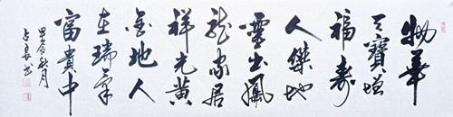 陈占良用行书书写的《沁园春 • 雪》、《将进酒》、《陋室铭》等作品,备受书法爱好者的喜爱,成为收藏之佳作。