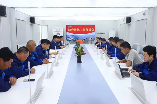 闻令即动,下好防御“先手棋”。台风预警拉响后,项目部迅速进入“防台状态”,召开防台部署会,明确责任分工,跟踪气象预警,动态调整防范措施,从早从严抓好防御台风的各项工作。