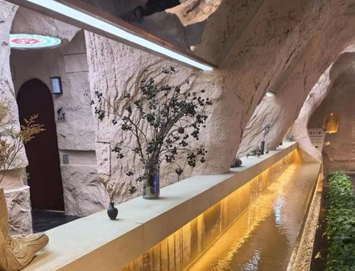 工作人员介绍说,八景楼改造前是个经营传统业态的老楼,二楼以上经营客栈,没有特色。基于这个原因,首先考虑周围市民和来敦游客的需求对其进行改造。在讨论中有人提出传统卫生间味道大、功能设施差,带给大家的体验不好,因此建议将这里改造成公共卫生间,“根据敦煌历史记载,古人对净身和净手这两件事非常重视,所以我们想到,应该把这里打造成有文化内涵、又舒适的公共空间。”