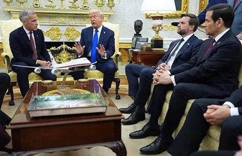 卡尼在椭圆形办公室接受记者采访时列举了特朗普在第二任期内取得的一些成就,当卡尼说到“在许多方面中最重要的是”时,特朗普趁卡尼停顿插嘴道:“以及加拿大和美国的合并。”卡尼随即表示:“我可没想那么多。”