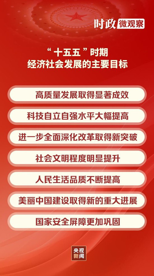 党的二十届四中全会提出了“十五五”时期经济社会发展的主要目标,并提出在此基础上再奋斗五年,到二〇三五年实现我国经济实力、科技实力、国防实力、综合国力和国际影响力大幅跃升,人均国内生产总值达到中等发达国家水平,人民生活更加幸福美好,基本实现社会主义现代化。