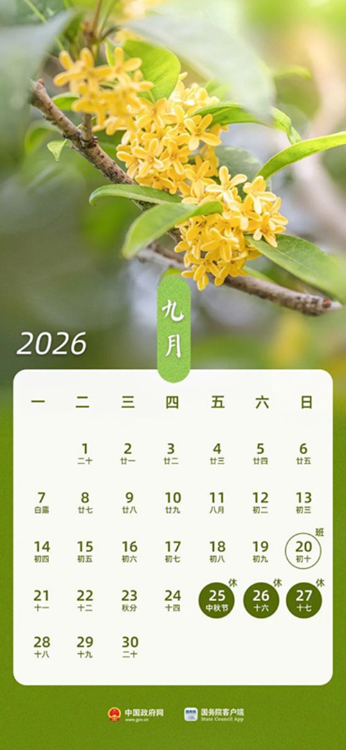 六、中秋节:9月25日(周五)至27日(周日)放假,共3天。