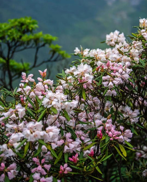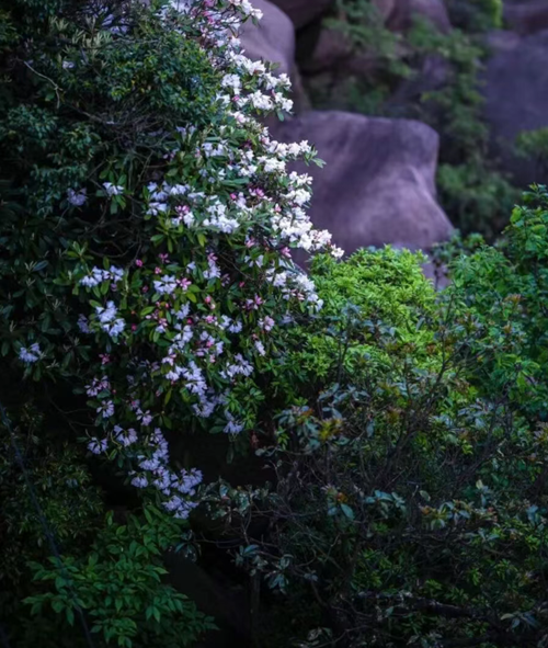 而作为上饶市市花的三清杜鹃的,代表品种猴头杜鹃,此刻正孕育着饱满的花苞,迎风待放,它的花朵硕大,花色会随时间从粉红渐变为洁白,待到初夏盛放时,漫山遍野的猴头杜鹃将如云似雪,与灵山的奇峰怪石交相辉映,美不胜收,在鱼跃龙门、封侯拜相、,华夏龙脊、云顶栈道等处,都能邂逅这高山精灵的绝美身姿。