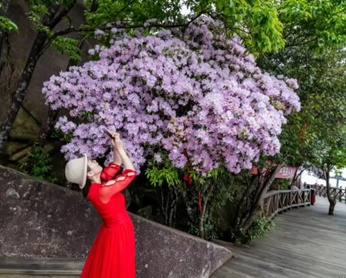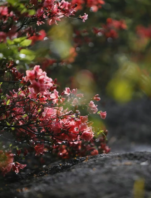 无论是山脚的蜿蜒小径,还是山腰的青翠林间,都能看见这抹热烈的红,一簇簇、一丛丛,或艳红如霞,或淡紫如梦,在绿叶的映衬下,开得肆意而张扬,将春日的灵山点缀得格外动人。
