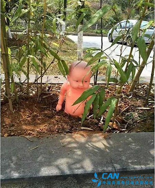 10个仿真娃娃被埋在高校花坛土里或放在土上,有的夹着烟,有的露出小手,有的只露一个头部,供过往师生观赏。