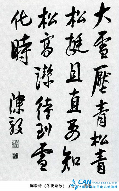 大雪压青松, 青松挺且直。 要知松高洁, 待到雪化时。 陈毅元帅的这首诗作,赞颂了人的坚韧不拔、宁折不弯的刚直与豪迈,和那个特定时代的不畏艰难、雄气勃发、愈挫弥坚、坚强的精神。