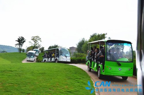 网媒曲靖行采访团记者乘车游览金麟湾爱情小镇