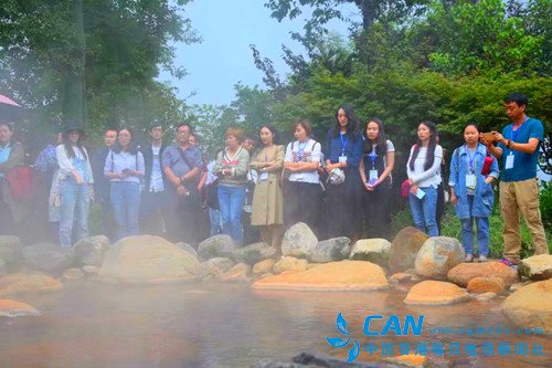 网媒曲靖行采访团成员参观金麟湾爱情小镇天然温泉源头