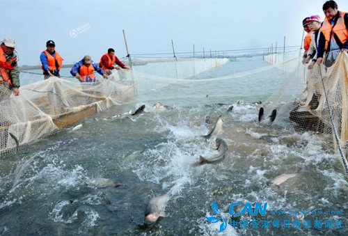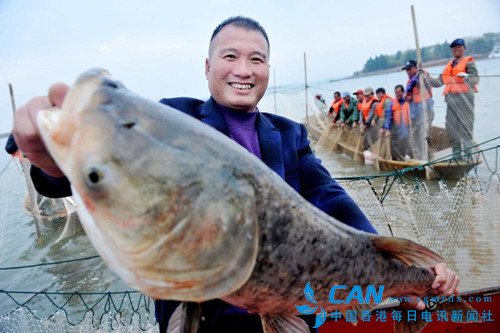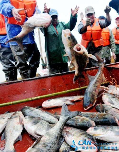 香港每日电讯消息: 冬季,是渔民喜获丰收的日子,在江西,鄱阳湖壹号有机鱼一年一度的冬季大捕捞在内珠湖开始撒下第一网。