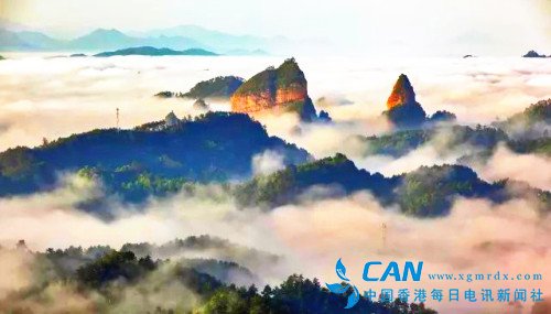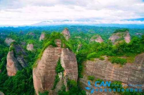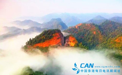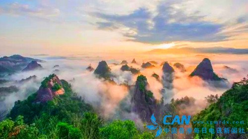十、万佛朝宗 万佛山以丹霞峰林而闻名,每一座峰林犹如一尊大佛,面向主峰盘腿而坐,虔诚聆听主峰佛宗的讲禅释经,形成“万佛朝宗”的壮观佛境。