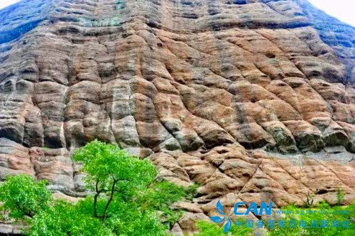 三、万佛壁 万佛壁是丹霞地貌经过长期的风化和水流侵蚀而形成,表面沟壑纵横的纹理犹如一座座栩栩如生的浮雕佛像。