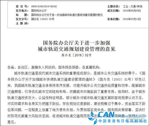 今天(13日),备受瞩目的《国务院办公厅关于进一步加强城市轨道交通规划建设管理的意见 国办发[2018]52号》(以下简称52号文)正式对外印发。相比15年前的81号文,新版意见对申报地铁城市的人口、公共预算收入、政府债务等12道“门槛”进行了提高。其中最引人关注的,要数地区生产总值GDP的指标要求从原有的1000亿元变成了3000亿元,翻了三倍。