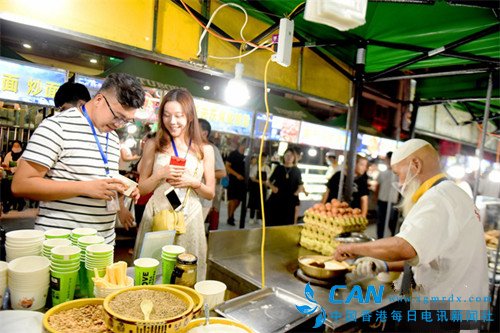 由每日甘肃网和兰州市委网信办组织的“2018年全国重点网络媒体、网络大V甘肃行”采访团走进兰州正宁路夜市,品西北风味美食。(每日甘肃网记者 韦德占/摄)