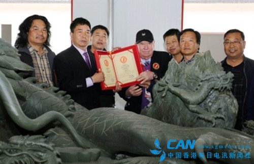 世界纪录协会官员现场为“中华腾龙砚”颁发认定书